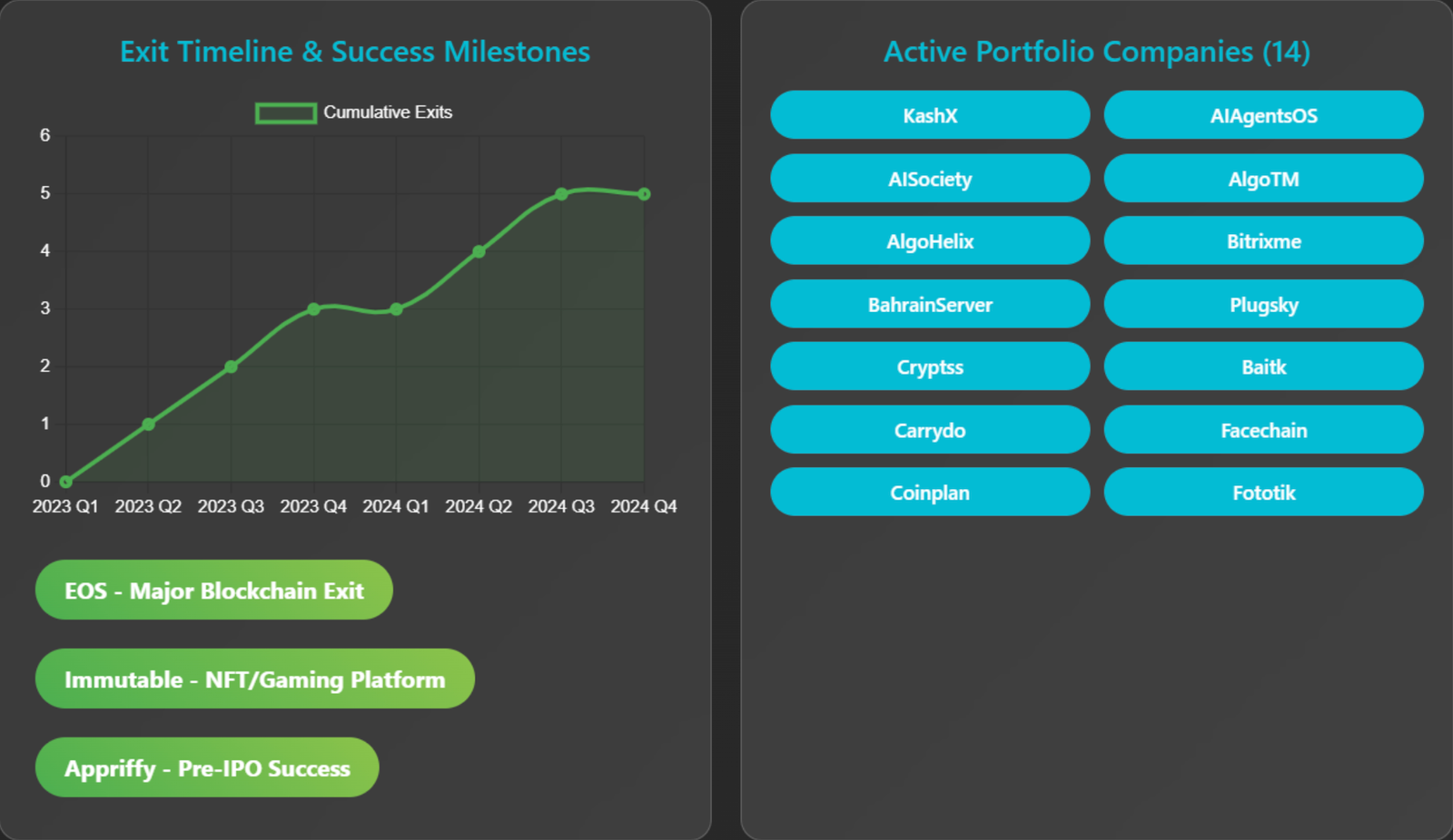 Access to a carefully curated portfolio of high-growth startups across fintech, AI, blockchain, and emerging technologies, reducing risk through diversification.